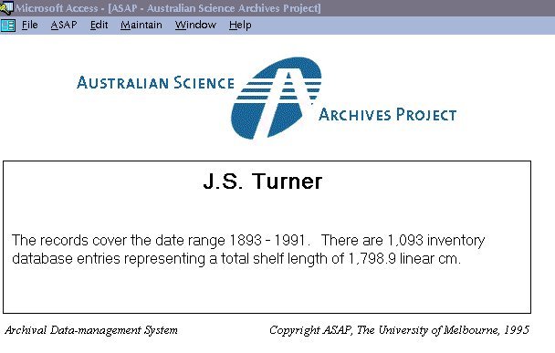 ![]() For the electronic Guide, the data in the ADS is currently output from the ADS using macros and modules (as described in the previous page about CSIRAC) to create the HTML files. We also use an application called HotDog Pro to edit these HTML files, to add images and extra links to other related web pages. Something else that we have recently been developing, and the Turner project has been a guinea pig for this, has been the Indexing function of the ADS. This differs from the ADS Keyterms function. Large projects usually have a finite list of keyterms to enable more user friendly, speedy searching capabilities, and data profiling within the database. For smaller projects, we have been using the Indexing function to produce "back of book" indexes for printed Guides to records.
