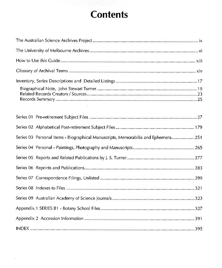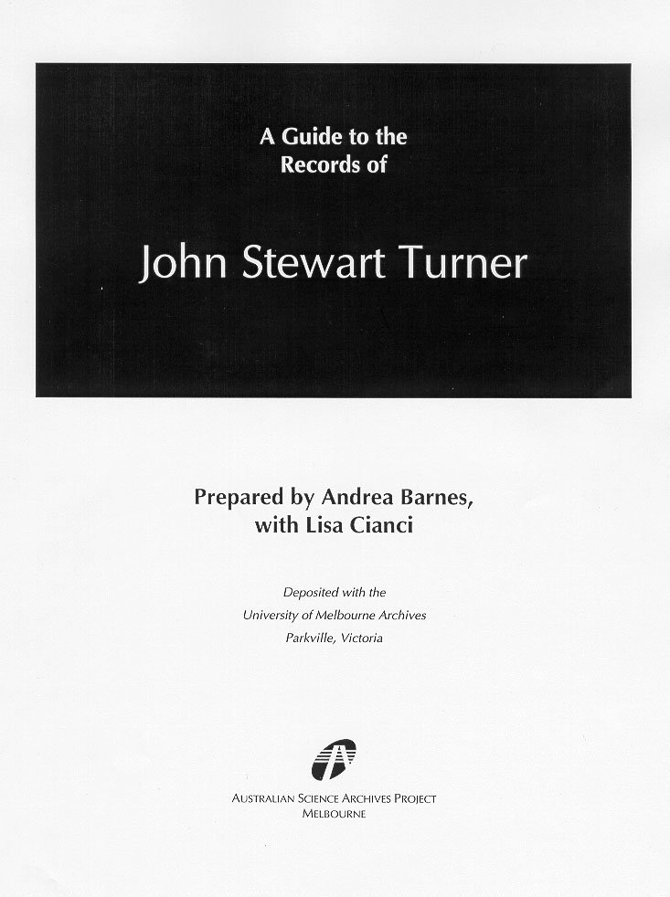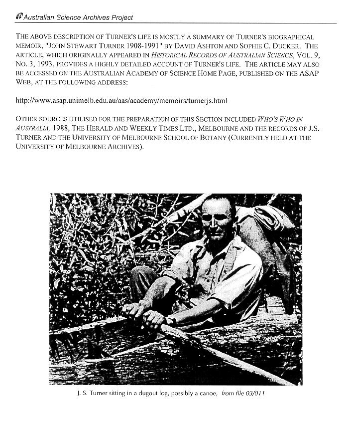 John Stewart Turner came to Melbourne from Cambridge to take up the Chair of Botany and Plant Physiology at the University of Melbourne School of Botany in 1938. He was then aged 29 and one of the youngest Professors to be appointed to a chair at the University. He occupied the position for thirty-five years until his retirement in 1973. In 1974 Turner was made an Officer of the Order of the British Empire for his services to Botany, but many believed that the award should have been made for Turner's great works in the fields of conservation and ecology and for his service to the people of Victoria towards the preservation of their natural heritage. The records of John Stewart Turner are currently held by the University of Melbourne Archives. ASAP received funding from the Feildman Foundation to undertake a detailed Inventory level description of these records. The project is now close to completion. ASAP archivist Andrea Barnes completed a detailed inventory listing and related Accession, Series and Provenance information using the ADS database.