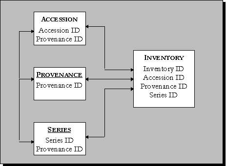 stored in the Accession, Series, Provenance and Inventory tables