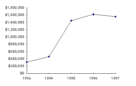 ASAP Revenue With our dramatic growth stabilised, and infrastructure in place, ASAP's 1997 assets and running budgets have been decreased in comparison to previous years. ASAP is currently operating three vehicles, and this should adequately fulfil our needs for the foreseeable future. The money-saving aspects of owning our own cars is expected to become even more apparent in the longer term. Our computer assets remain our biggest expense; while all ASAP staff now have computers adequate to the demands of their work, we continue to make a commitment to continually upgrading our technology. |