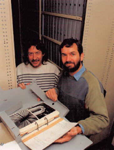 Gavan McCarthy and Ken Anderson at the Hazelwood Power Station. Consultancies have become a larger part of ASAP's work, as large institutions and organisations become more aware of the value of their records, and their need to control them. For ASAP these consultancies provide a means of ensuring the preservation of information generated by science at work. These records are as important to our understandings of science and its place in society as the records of individual scientists. They also contribute financially to the Project, sustaining it in the longer term. Our main tool for information management, ASAP ADS has been developed partly in response to the needs of our consultancy clients. At the other end of the information production line, ASAP is also dedicated to ensuring that the knowledge we, and others, produce, about Australia's science and technology is made accessible to as many people as possible. To this end, Gavan McCarthy has been engaged on a consultancy with Australian Archives, aimed at enabling the transfer of data between RASA, ADS and Australian Archives systems, with the view to facilitating the production of new subject-oriented national guides. ASAP's Archival Data System (ADS) is a sophisticated information management system developed by ASAP in response to the wide range of collections with which it has had to deal. As a result, ADS is highly flexible, able to manage collections of any size, and to move from a broad survey level to a highly detailed description. It is also designed to deal with collections that may contain a variety of record formats and artefacts, and that may be located in different places. The methodology that has been developed enables teams of people to work on a collection simultaneously, considerably speeding the processing time, and providing a hard copy trail of all the data collected. Survey sheets are used to record information about the context of the records (provenance and series) as well as describing the records themselves (at item level). All the information is entered into a database, from where it can be manipulated to provide hard copy finding aids organised for specific management tasks, or accessed directly on-line. Ultimately, as the cost of PC notebook computers reduces, it will be possible to have teams processing directly into the database. However, elements of the current system will remain an important part of ADS, as they provide it with the flexibility to be used in a variety of environments. CSL Plasma Products FacilityAfter a successful initial analysis of the CSL Inc, Plasma Products Facility, Broadmeadows, ASAP were engaged by CSL to tackle the more detailed task of controlling the vast bulk of vital records created during the design, commissioning and construction phases of the project. Dani Zephyr was employed to take on the role of Project Archivist at the CSL Broadmeadows site, a demanding role she has taken on with great dedication. Other staff members employed at the CSL site during the year were Lisa Cianci, Val Cook, Simon Eastman, Milly Fels, David Fowler, Julie Gleeson, Geoff Gray, Catherine Green, David Hudson, Fiona Kinsey, Jason McGlone, Marie Steer, Georgina Stewart, and Graeme Tucker. We would like to thank all for their commitment and enthusiasm. This has been the first large scale project using ASAP ADS, and the input of staff and users has contributed a great deal to its continued development. Hazelwood Power StationProcessing of the records of the Hazelwood Power Station commenced at the end of January 1994 using a team of employees provided by the Station under the direction of the Chief Archivist, Gavan McCarthy. The team has worked at an extremely consistent rate over the past six months and has achieved much. A variety of strategies have been employed to deal with the disparate records, in very varied conditions, but the outcome for all records has been entry onto the Hazelwood ADS database. The newly found control over the archival records (records that could be vital to the future maintenance and running of the Station) has already been aptly demonstrated. Whereas it had taken up to three days to find important instrumentation charts in the past they have now been located in under ten minutes. The Hazelwood Power Station Archives Project provides ASAP with a highly successful model for running Projects in which it provides management and training skills to the client's employees. It has also demonstrated the flexible and user-friendly nature of ASAP ADS Australian Archives Feasibility StudyThe Chief Archivist conducted a feasibility study funded by Australian Archives looking into the possibility of producing a guide or guides to the records of science and technology in the custody of Australian Archives. Clearly, this is potentially a mammoth task which could only be achieved realistically if it were possible to transfer the relevant data from the Australian Archives databases to a system better suited to the production of subject guides. The study demonstrated that data could be taken from the Australian Archives systems and added to the recently modified ASAP national register, RASA. From RASA it has already been shown to be a relatively easy task to produce both hard copy and on-line guides. Funding will now be sought to advance the process to the next stage and ultimately the production of the guides. |